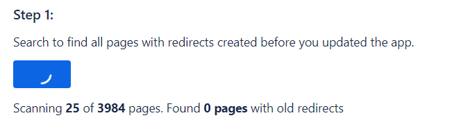 Click Search to generate a list of all pages that need to be migrated to the new version of Redirection by Easy Apps.