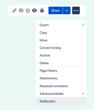 Now you must use the ‘More actions’ menu (in published or view mode) to create or edit a redirect: