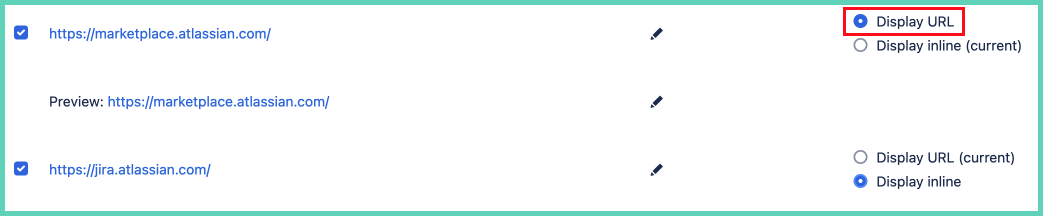 Display URL shows the full URL, example: https://www.atlassian.com/.