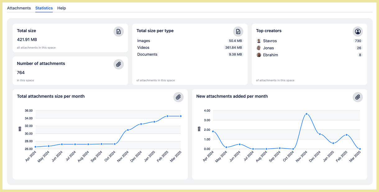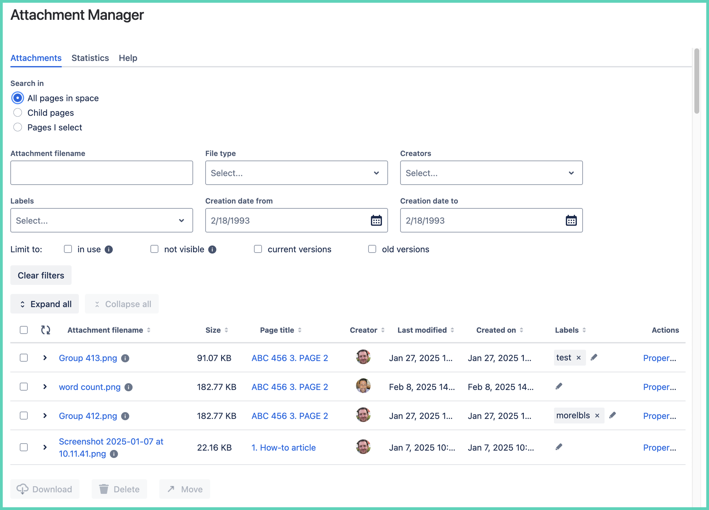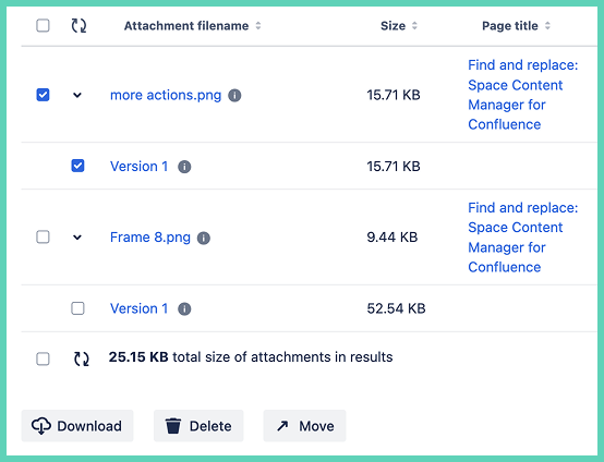 The functionality of the Attachment Manager respects and adheres to the Confluence space permissions. What you can view, modify, or manage is determined by your assigned permissions within the space.