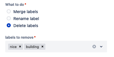Choose the second option ‘Rename label’. Then choose a ‘Label to rename’ from the drop-down. To rename to an existing label a label in the drop-down under ‘Rename label to’: