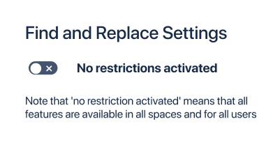By default all users have full access to Find and Replace. To set restrictions you first need to toggle to enable restrictions.